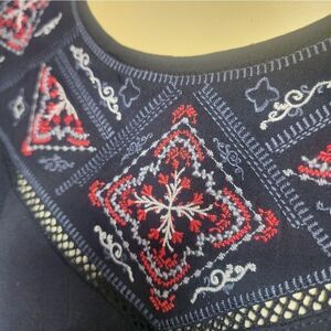Gorgeous embroidery detail. Waffle knit. Flowy.
