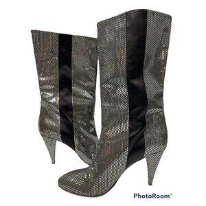 Alchimia di Ballin Silver Mizar Tuxedo Leather Mid Calf Boots IT 40 US 10 $1095