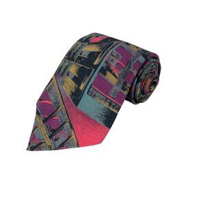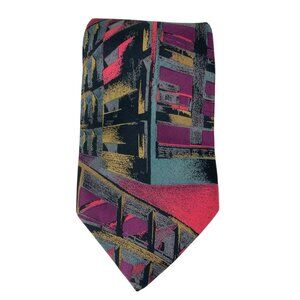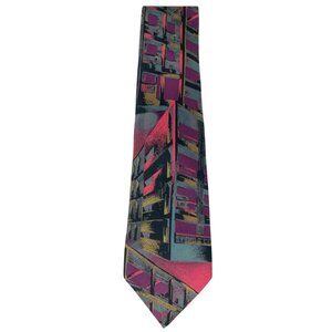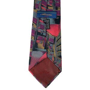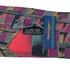 Alcione Milano Silk Made in Italy Red/Blue Geometric Abstract Pattern Necktie