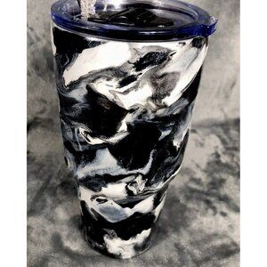Alcohol Ink Tumbler 30oz Black/White Insulated Stainless Steel With Lid Cup