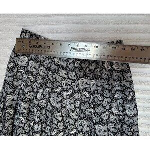 Alcott & Andrews Women's Pleated Maxi Skirt 100% Linen Boho Paisley Black Size 8