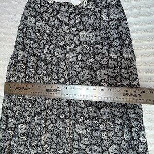 Alcott & Andrews Women's 100% Linen Pleated Maxi Skirt Size 8 Black Paisley Boho