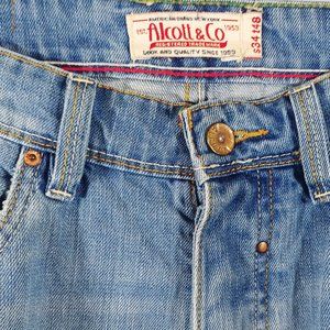 Alcott & Co Distressed Button Fly Jimmy Slim Fit Jeans Blue Washed. Soft and in good condition. Size S34 T48