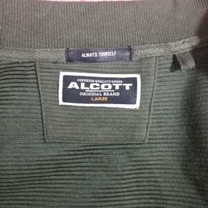 Alcot men zip up sweater in a military green color with 3 zipper pockets, it's an Italian brand. in a excellent preowned condition measures on photos