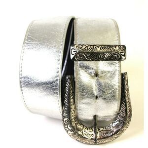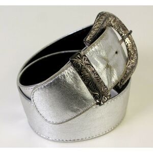 Alden Howard SILVER GENUINE LEATHER 2"Wd CORSET DRESS WOMEN'S BELT Sz S/M/L (D51