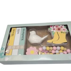 Aldi Finds Spring Tray Objects Rubber Boots, Book Stack, Ceramic Bird & Beads