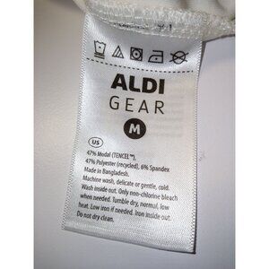 • Aldi Gear Cream Sweatshirt Crew Neck Rainbow Cuff and Collar Drawstring on the Bottom of the Shirt Multi Color Collar and Cuffs Measurement Lying Flat Pit 2 Pit 20in Shoulder 2 Hem 22in RN 100345