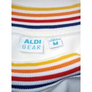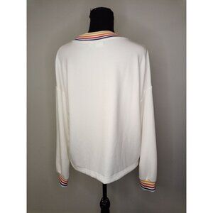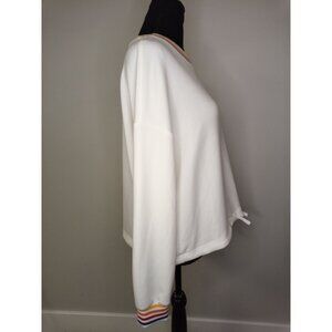 Aldi Gear Cream Sweatshirt Crewneck Rainbow Cuff and Collar Size Medium