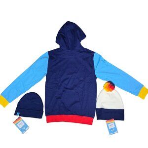 Aldi Gear NWT Hoodie & 2 Beanies Set size S Blue Red Yellow Orange