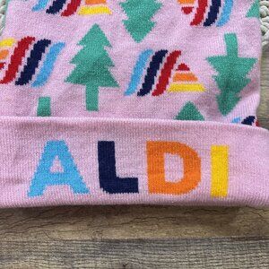 Aldi Gear Pink Holiday Logo Beanie Pom Knit Hat Adult One Size