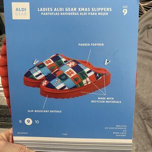 Aldi Gear Slippers & Beanie Hat Christmas Womens Size 9 Holiday 2024 Edition NEW