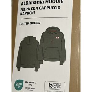 unisex Limited edition The Aldi Mania Gear Green Hooded Sweatshirt Pullover Hoodie in size Large is a stylish and versatile piece perfect for various occasions. ideal for winter and fall seasons. The pullover style with a hood adds convenience and warmth, while the solid green color and Aldi logo accents give it a trendy outdoor and retro vibe. Whether you're traveling, working out, or simply lounging, this hoodie is a must-have addition to your wardrobe.