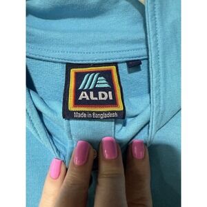 Aldi Quarter Snap Pullover Sweatshirt Unisex Medium Blue Rainbow Striped EUC