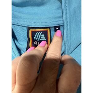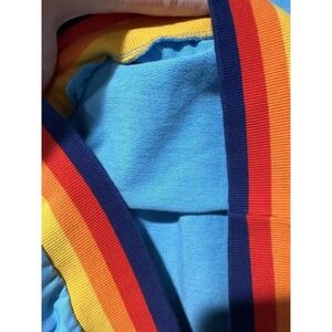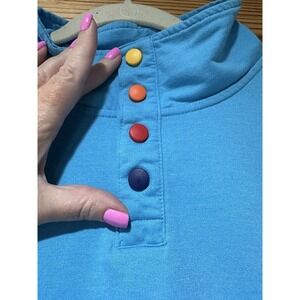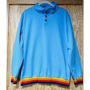 Aldi Quarter Snap Pullover Sweatshirt Unisex Medium Blue Rainbow Striped EUC.