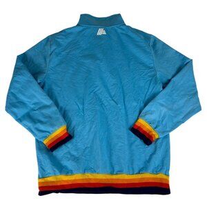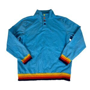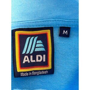 The Aldi Work Uniform Shirt from the 2023 Gear Capsule Collection in Men’s Size M is a unique and stylish piece. This blue pullover shirt features a mock neck for a modern touch, while the rainbow stripes on the hem and cuffs add a bold, colorful accent. Designed for both comfort and functionality, it's a great find for Aldi fans or collectors of limited-edition workwear.