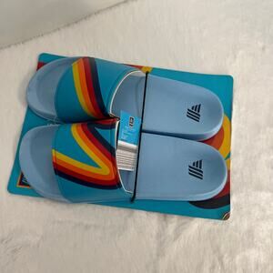 Aldi's Comfort Slide Sandals Men Size 11 Lightweight Blue Rainbow Striped Soft Flexible NWT Unisex