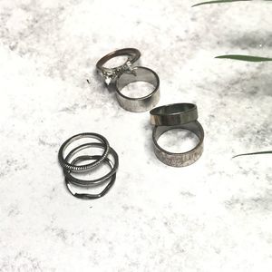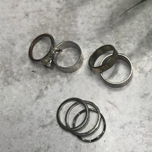 Features: 7 minimalist silver stacking rings, several sizes, EUC showing some wear. From Aldo, Sizes 7/8