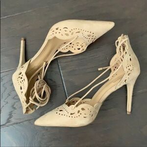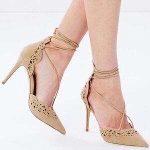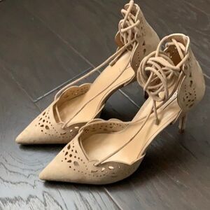 Aldo Antoinette Suede Eyelet Strappy Pumps Heel Nude 7.5
