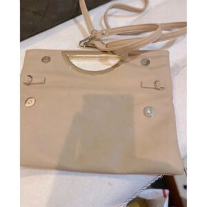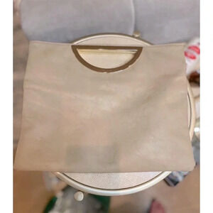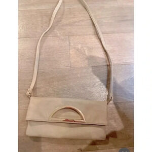 Aldo Beige Fold Over Crossbody Bag Clutch with Gold Accent Adjustable Strap