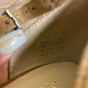 The block heels ensure optimum balance, while the stylish upper shimmers with a hint of golden glint.