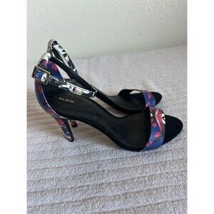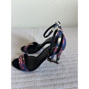 Aldo Black Blue Pink Multi Colored Cardross Ankle Strap Heels Size 7.5 US