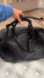 Stylish black duffel with chevron pattern. Features chain detail and sturdy handles. Ideal for travel or gym.