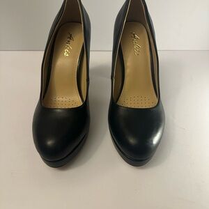 Elevate your style with these Aldo black heels, featuring a sleek and minimalist design. Crafted from smooth leather, these medium-height heels are perfect for business or formal occasions. Their timeless appeal ensures they remain a staple in any wardrobe.