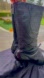 A clean back zipper keeps the profile streamlined, while the structured shape gives them a chic, fashion-forward edge. Perfect for someone who wants a bold yet sophisticated black boot with unique design flair.
