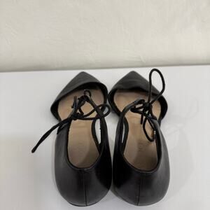 Aldo Black Leather Ankle Strap Pointed Toe Ballet Flats Size 7