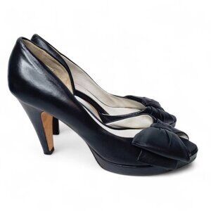 Aldo Black Leather Bow Front Pumps Women's Peep Toe Evening Cut Out Sides 7.5