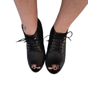 Aldo - Black Leather Open Toe Gold Spike Lace Up Booties