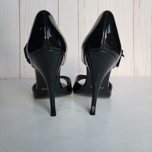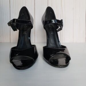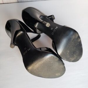 Aldo Black Peep-Toe Buckle Heels *with scuffs on the heel and front ... see photos Size 38