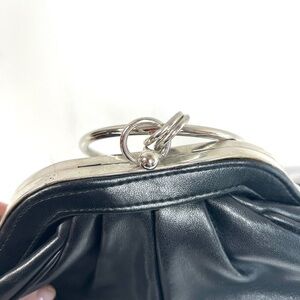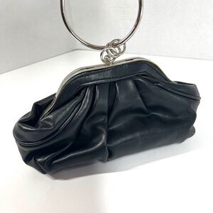Aldo Black Ruched Leather Small Hand Held/Metal Loop Clutch