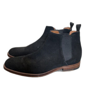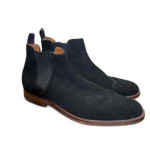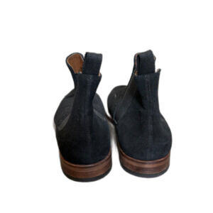 Elegant black suede Chelsea boots. Sleek design with elastic side panels. Perfect for versatile styling.