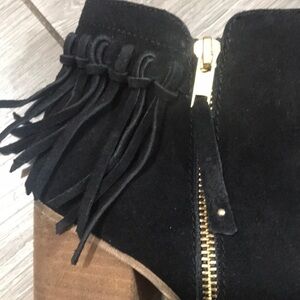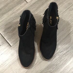 Aldo Black Suede Stacked Heel Fringe Boots size 8.5