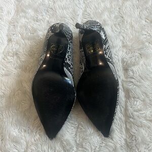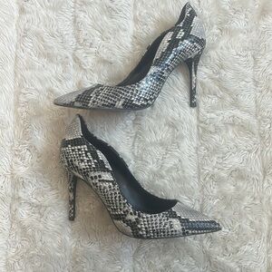 Chic snake print design. Sleek pointed toe. Perfect for any occasion.