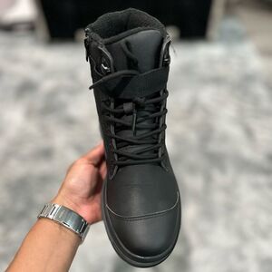 These Aldo black boots feature a sturdy construction with a weather-resistant design, perfect for versatile wear. The boots boast a classic high-top style with a padded ankle collar for added comfort and support. Their thick, rugged rubber outsole ensures durability and traction on various surfaces. No Box!!!