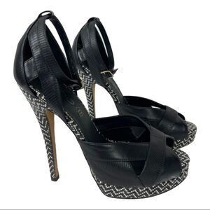 Preloved Aldo Black White Chevron Stripes Platform Heels Women’s Size 8.5 Ankle Strap 6in
