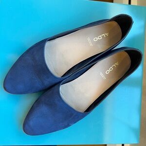 Aldo Blanchette Blue Suede Slip On, Toe Ballet Flats. Women's