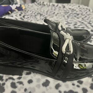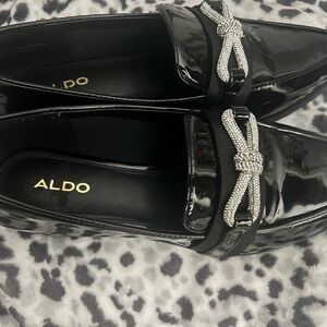 Aldo Bow rhinestones patent leather flat/Loafers.