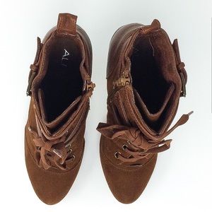 Aldo Breslow Ankle Boots in Cognac. Size 39. The bottoms show some wear but the boots themselves are in excellent condition. Come with original box. Heel is about 4” with a 1” platform.