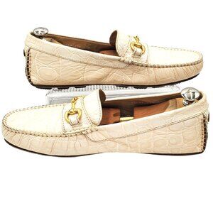 Aldo Brue Men size 11 Beige Crocodile Embossed Leather Driving Loafer shoe Italy