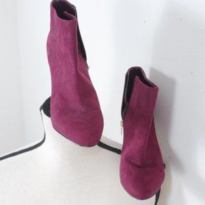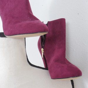 Aldo Burgundy Suede Side Zipper 4" Heel Size 7 1/2 Ankle Booties