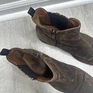 Aldo Boots Mens Size 8 Brown Suede Side Zip Ankle Dress Chelsea Classic Shoes