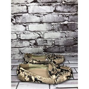 Selling Aldo Cream Snake Skin Print Bow Leather Driving Shoes Women Sz 8M US/38.5EU