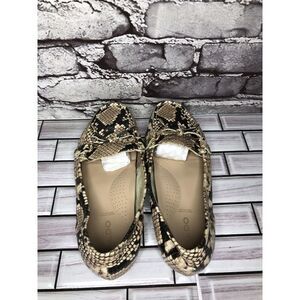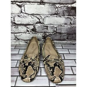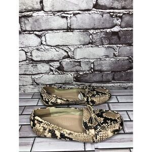 Aldo Cream Snake Skin Print Bow Leather Mocs Driving Shoes Women Sz 8M US/38.5EU