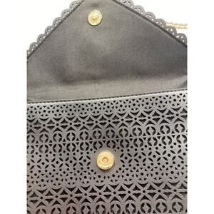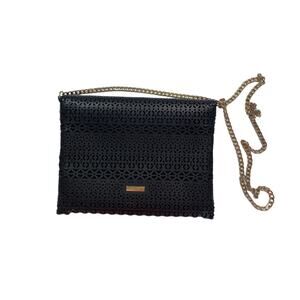 Aldo Crossbody Bag Black Envelope Floral Laser Cut Out Design Gold Chain Strap