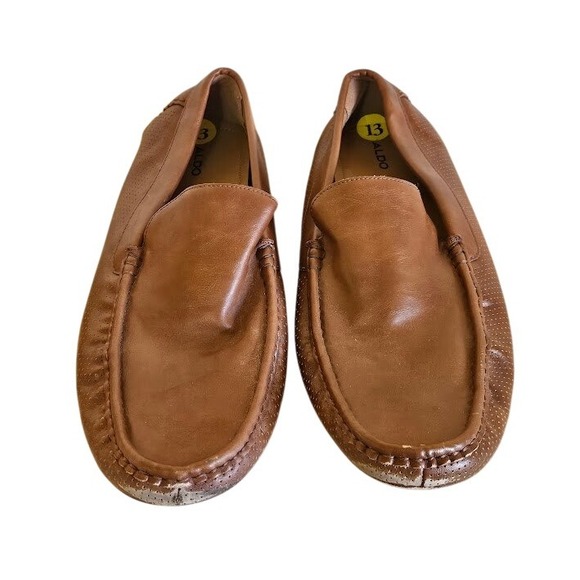 Keywords: ALDO shoes, mens loafers, driving moccasins, brown leather, perforated shoes, slip on, casual footwear, mens size 13, comfortable shoes, weekend wear, office casual, smart casual