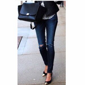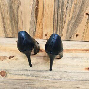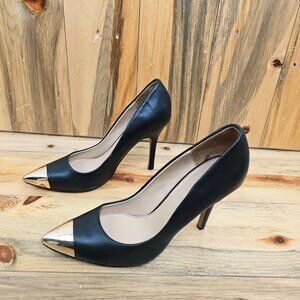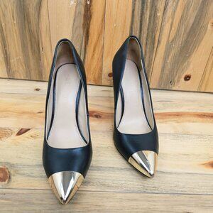 Aldo Essi Black Leather Pumps with Gold Toe Cap Size 8.5