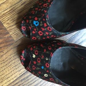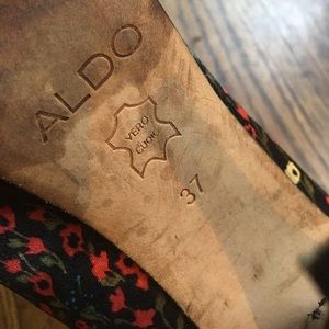 Aldo 4" heel with 1" platform. Floral fabric. Some wear under one heel. See pictures.
